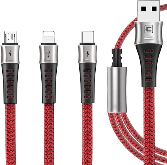 Amazon Com Multi Charging Cable Cafele 4 3ft Universal 3 In 1 Nylon Braided Usb Cable 3 0a Fast Charging Data Transfer Charger Cord Compatible With Type C Micro Usb Devices Red 4 3ft