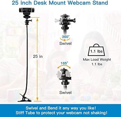 25 inch webcam stand flexible desk mount clamp gooseneck stand for logitech. Simple installation desk mount webcam c clamp opens to max thickness 6cm 2 3 inches for easy installation on the desk table sideboard perfect for christmas parties.