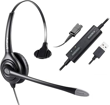 Amazon Com Pchero Monaural Rj9 Usb Headset With Microphone Universal Telephone Computer Wired Headphones For Business Call Center Online Courses Skype Chat Webinar Home Audio Theater