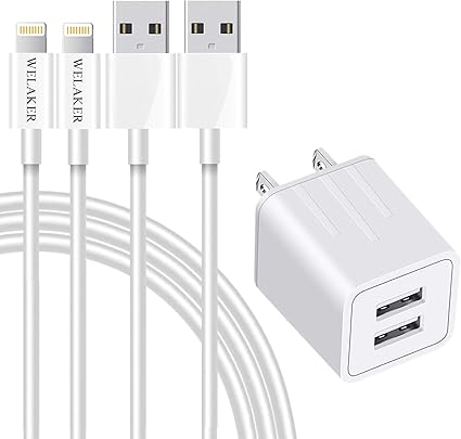 Amazon Com Iphone Charger Welaker 2 Pack 6ft Lightning Cable Data Sync Transfer Cord With 2 Port Wall Charger Charging Plug Adapter Ul Listed Compatible With Iphone 11 Pro Max Xs Xr X 8 7