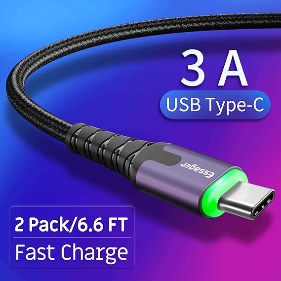 Amazon Com Essager Usb Type C Cable Fast Charging With Led Light 3a 2 Pack 6 6ft I Dawn Premium Nylon Braided Usb C Cord Compatible Samsung Galaxy Note 9 8 S10 S9 S8 Google Pixel 2 3xl Grey