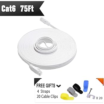 Cat 6 ethernet cable 75 ft flat with clips durable long internet network lan patch cords solid cat6 high speed computer wire with rj45 connectors for router modem ps faster than cat5e cat5 white. Product title cablevantage rj45 cat6 75ft 75 ft ethernet lan netwo. Cat 6 ethernet cable 75 ft flat with clips durable long internet network lan patch cords solid cat6 high speed computer wire with rj45 connectors for router modem ps faster than cat5e cat5 white.