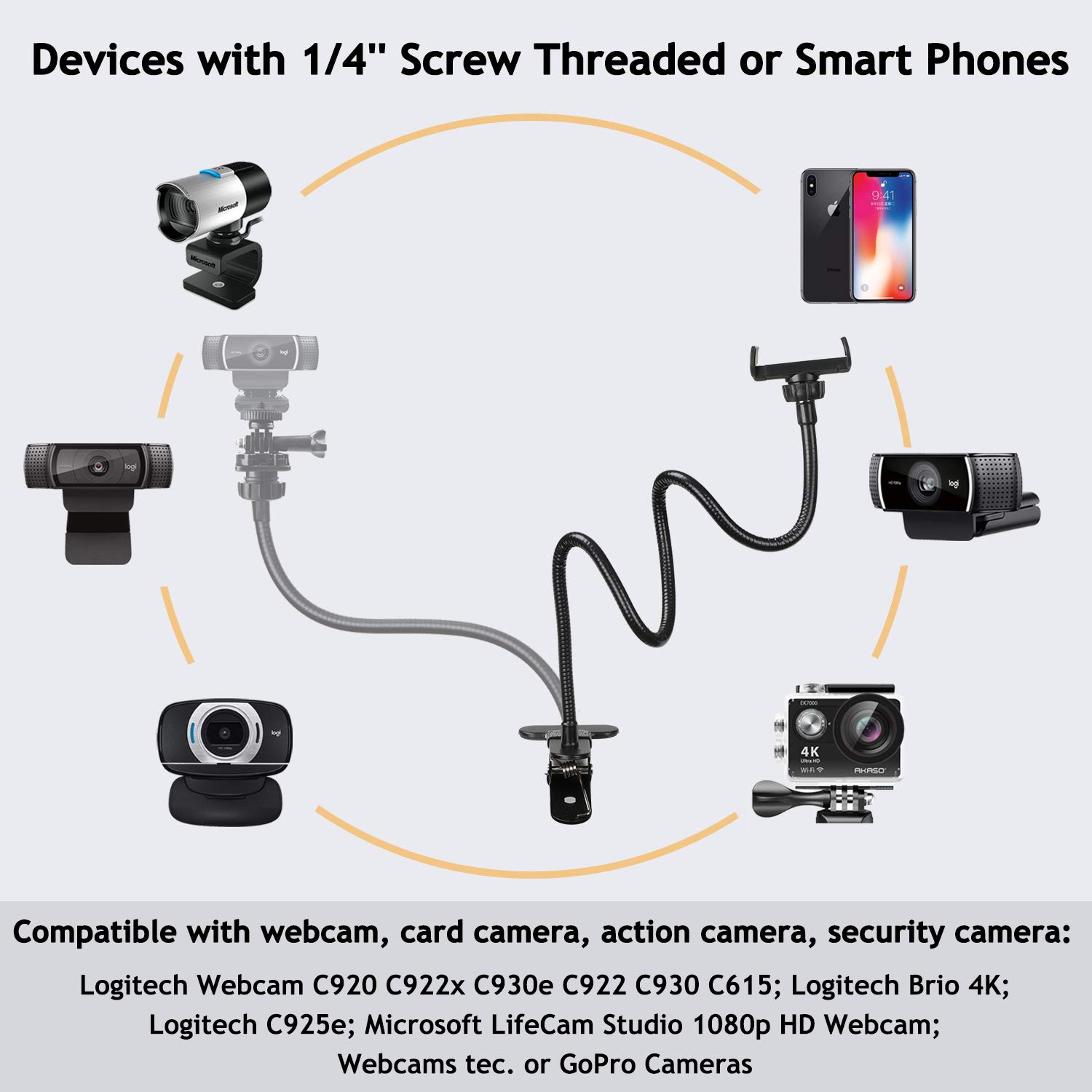 Webcam stand and phone holder amada 25 inch flexible arm 360 desk or bed gooseneck mount stand for cell phone 11 pro xs b088rc8n6b. 25 inch webcam stand enhanced desk jaw clamp with flexible gooseneck stand for logitech webcam c920 c922 c922x c930 c615 c925e brio 4k by amada homefurnishing 4 2 out of 5 stars 228 24 99. Deosdum webcam stand and phone holder 25 inch flexible arm 360 desk or bed gooseneck mount stand suitable for cell phone 11 pro xs max xr x 8 7 6 plus and logitech c925e c922x c930e c922 ce0101105329 1911 1839009061. Webcam stand and phone holder amada 25 inch flexible arm 360 desk or bed gooseneck mount stand for cell phone 11 pro xs max xr x 8 7 6 plus and logitech c925e c922x c930e c922 c930 c920 c615 brio 4 3 out of 5 stars 175.