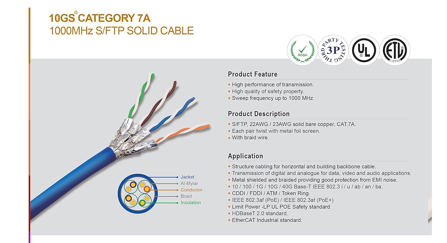 Cat7a shielded riser cmr 1000ft s ftp 23awg solid bare copper 1000mhz ul certified bulk ethernet cable reel in white b0721tmvfw. Elite cat7a shielded riser cmr 1000ft s ftp 23awg solid bare copper 1000mhz ul certified bulk ethernet cable reel in white 4 9 out of 5 stars 16 374 99. Before you buy elite cat7a shielded riser cmr 1000ft s ftp 23awg solid bare copper 1000mhz ul certified bulk ethernet cable reel in blue get notified about price changes in your store area. S ftp hyper speed cat8 ethernet cable is made of 4 shielded foiled twisted pair s ftp and single strand ofc wires 26awg which supports bandwidth up to 2000mhz and boosts the speed of data transmission up to 40gbps.