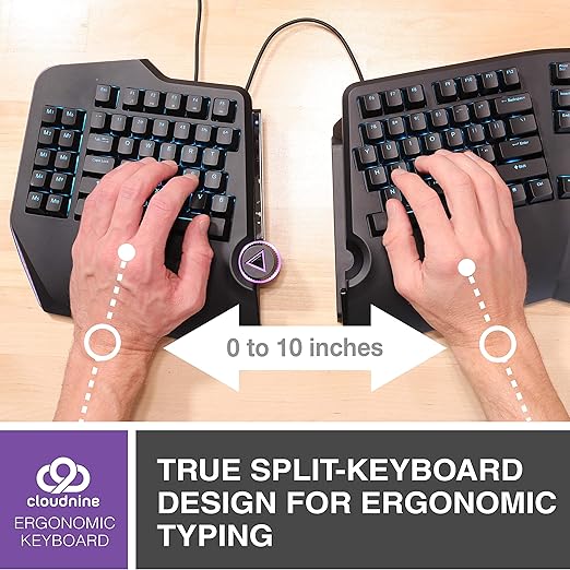 Amazon Com Cloud Nine C989 Ergonomic Mechanical Keyboard For Pc Cherry Mx Blue Switches Rgb Light Up Led Backlit With Usb Ergo Split Key Board With Macro Computers Accessories