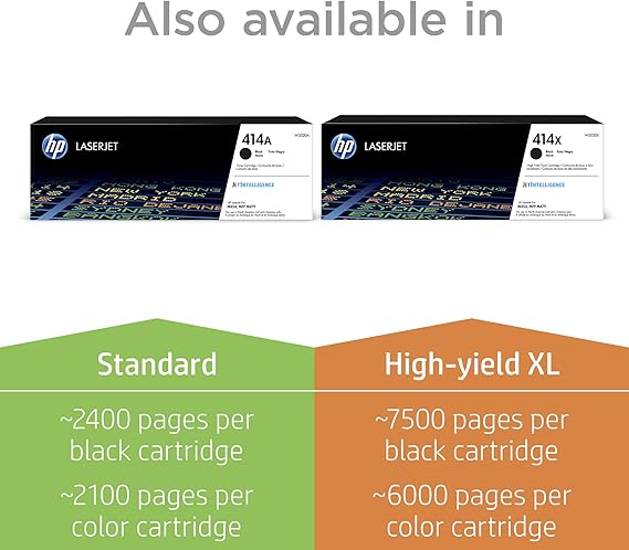 Choose high yield options for high volume office printing 1 and protection against counterfeits with hp anti fraud technology. These cartridges provide high web page yield and also p. Hp 414a toner cartridges work with hp printers.