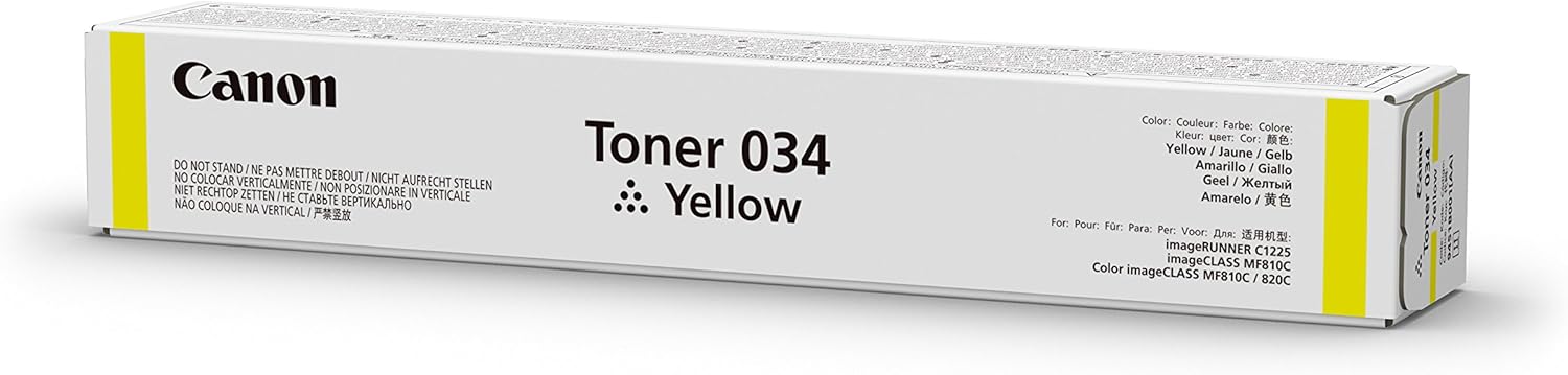 Canon genuine toner cartridge 034 yellow 9451b001 1 pack for canon color imageclass mf810cdn mf820cdn laser printers b00rwwthl2. The yield allows your staff to print up to 7 300 pages before having to replace this cartridge providing an optimal choice for large offices. Drum 034 yellow yields approximately 34 000 pages. Canon genuine toner cartridge 034 yellow 9451b001 1 pack for canon color imageclass mf810cdn mf820cdn laser printers 5 0 out of 5 stars 3 197 99 197.